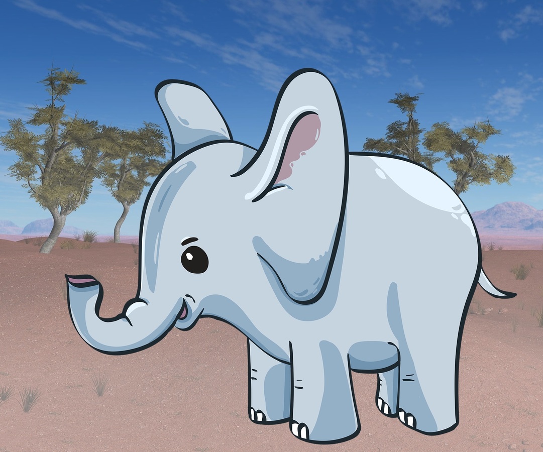 Jigsaw puzzle of a baby elephant with big ears in a desert