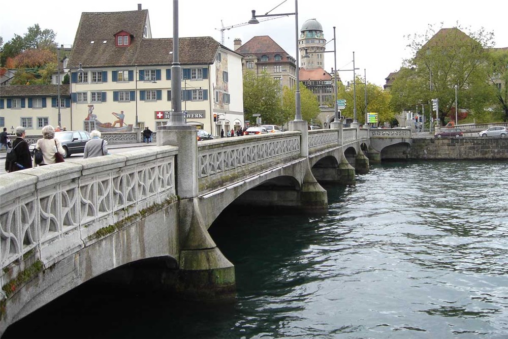 Jigsaw puzzle of a group of people crossing the bridge towards the city