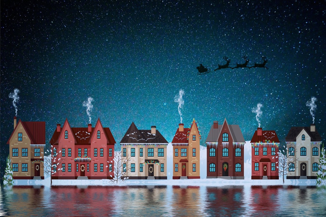 Jigsaw puzzle of Santa Claus delivering presents in the night