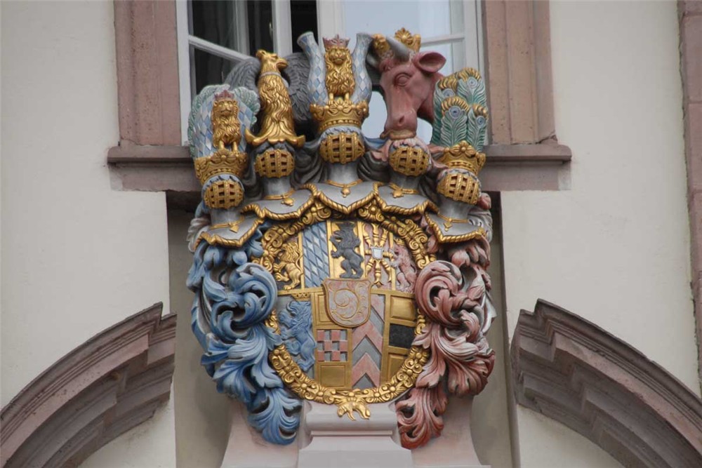 Jigsaw puzzle of a large pediment mounted to the side of a building