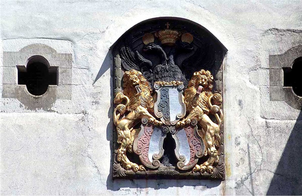 Jigsaw puzzle of a close up of a stone building with a logo