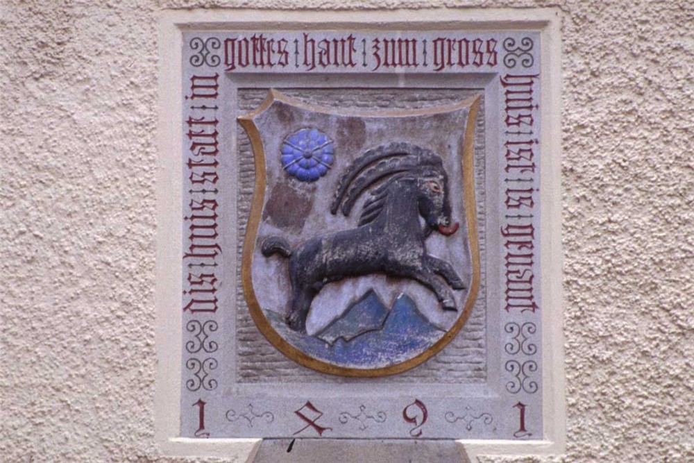 Jigsaw puzzle of a close up of a painted wall with a goat