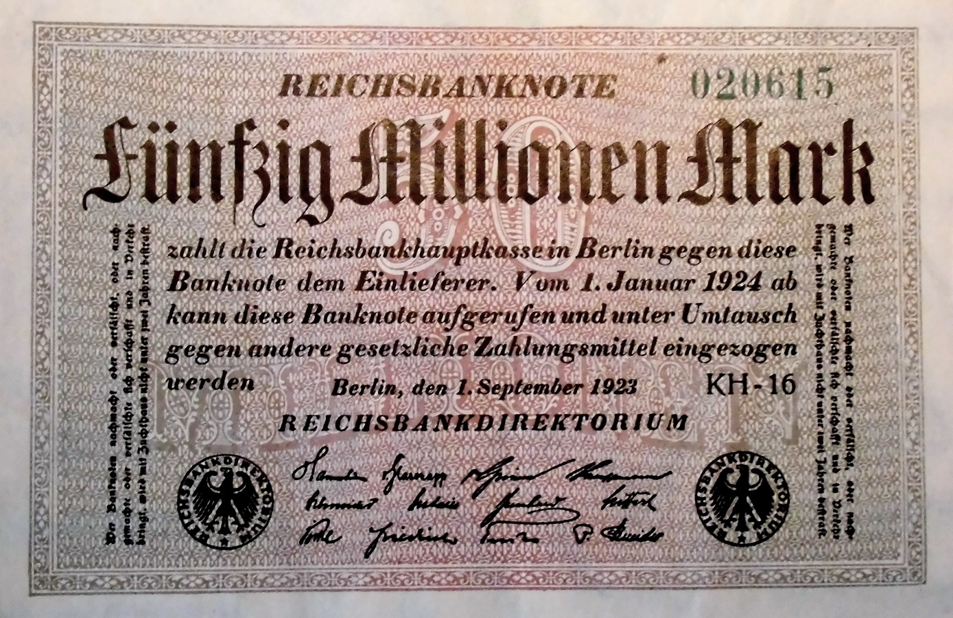 Jigsaw puzzle of a copy of a Five Million Marks Document