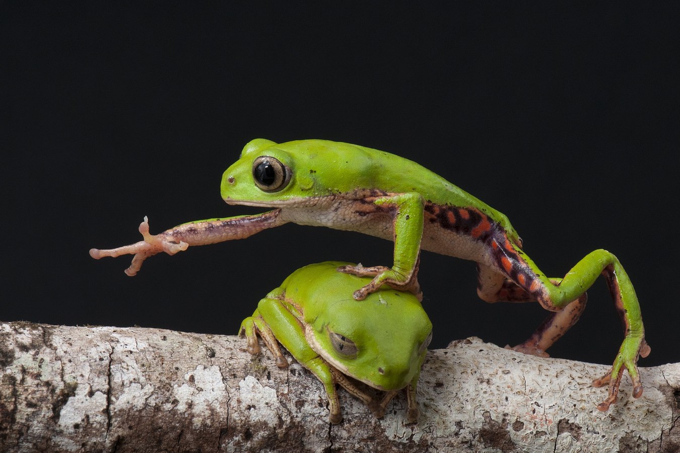 Jigsaw puzzle of a frog reaching is hand on the other side while stepping on another frog
