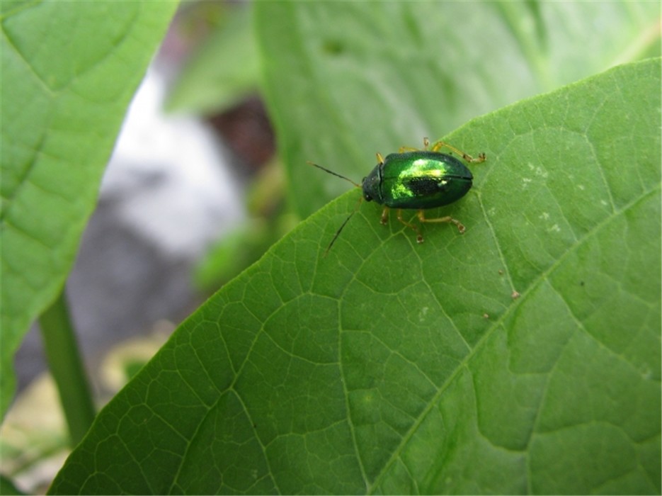 Jigsaw puzzle of a close up of a dogbane beetle on a leaf