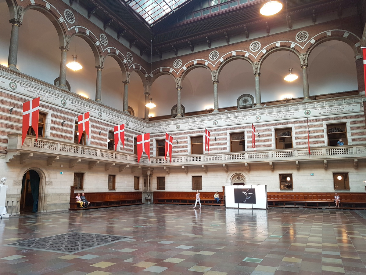 Jigsaw puzzle of an interior view of the Kopenhagen City Hall with columns and pendiments