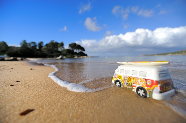 Tags:  outdoor  water  small  sitting  boat  beach  food  board  ocean  truck  body  man  table  riding  sand