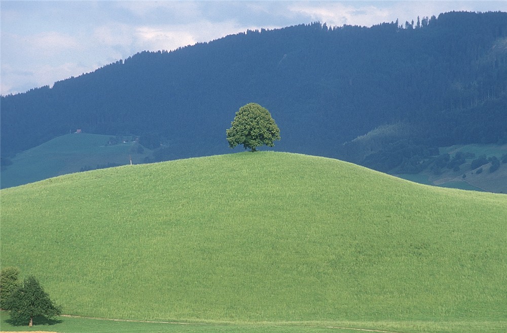 Jigsaw puzzle of A hill with a tree in the middle and a big mountain as background