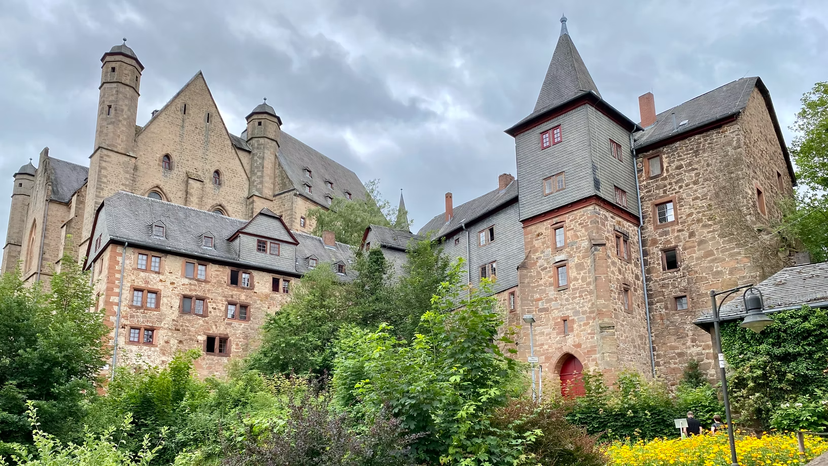 Jigsaw puzzle of Marburg Castle in Marburg, Hesse, Germany. The castle was constructed in the 11th century.