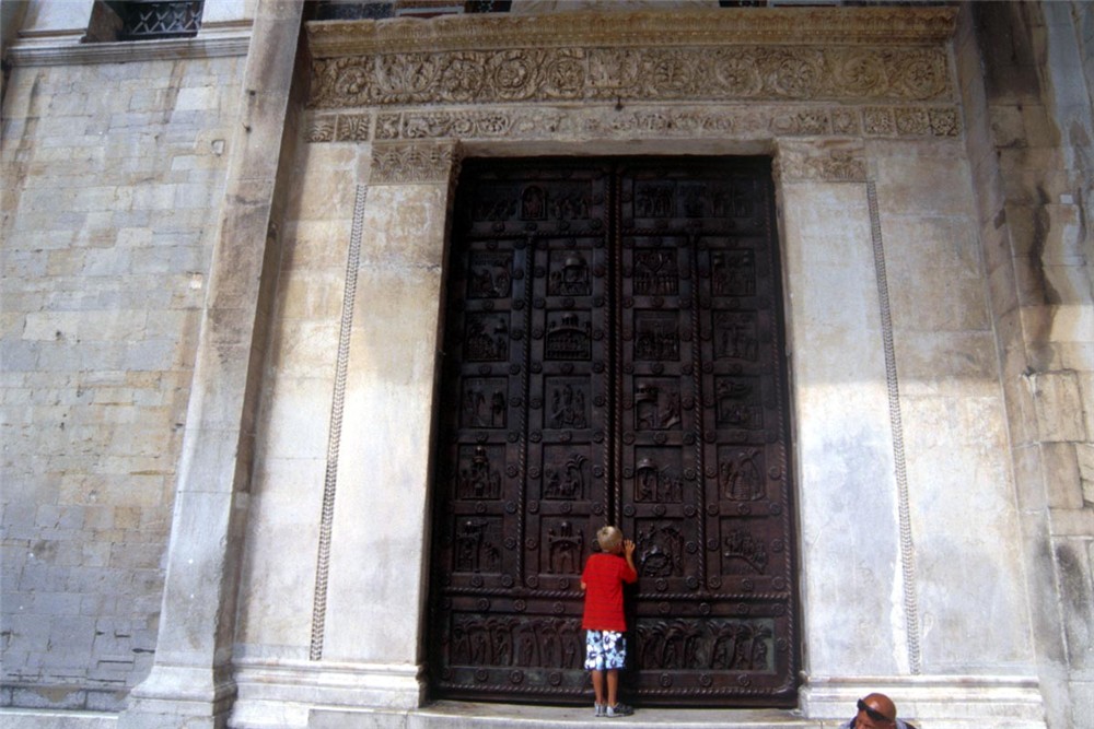 Jigsaw puzzle of a close up of a stone building with a bug door