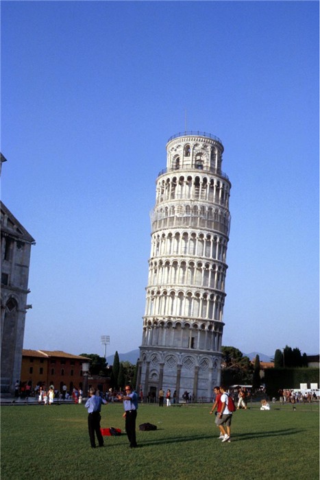 Jigsaw puzzle of a group of people standing in front of Leaning Tower of Pisa in the grass field