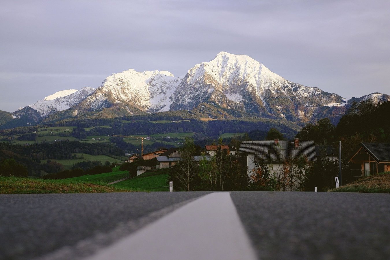 Jigsaw puzzle of an ant view of the roads leading towards the houses and mountains in the background