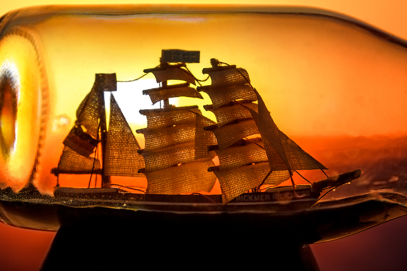 Jigsaw puzzle of A miniature scale of a ship in a bottle