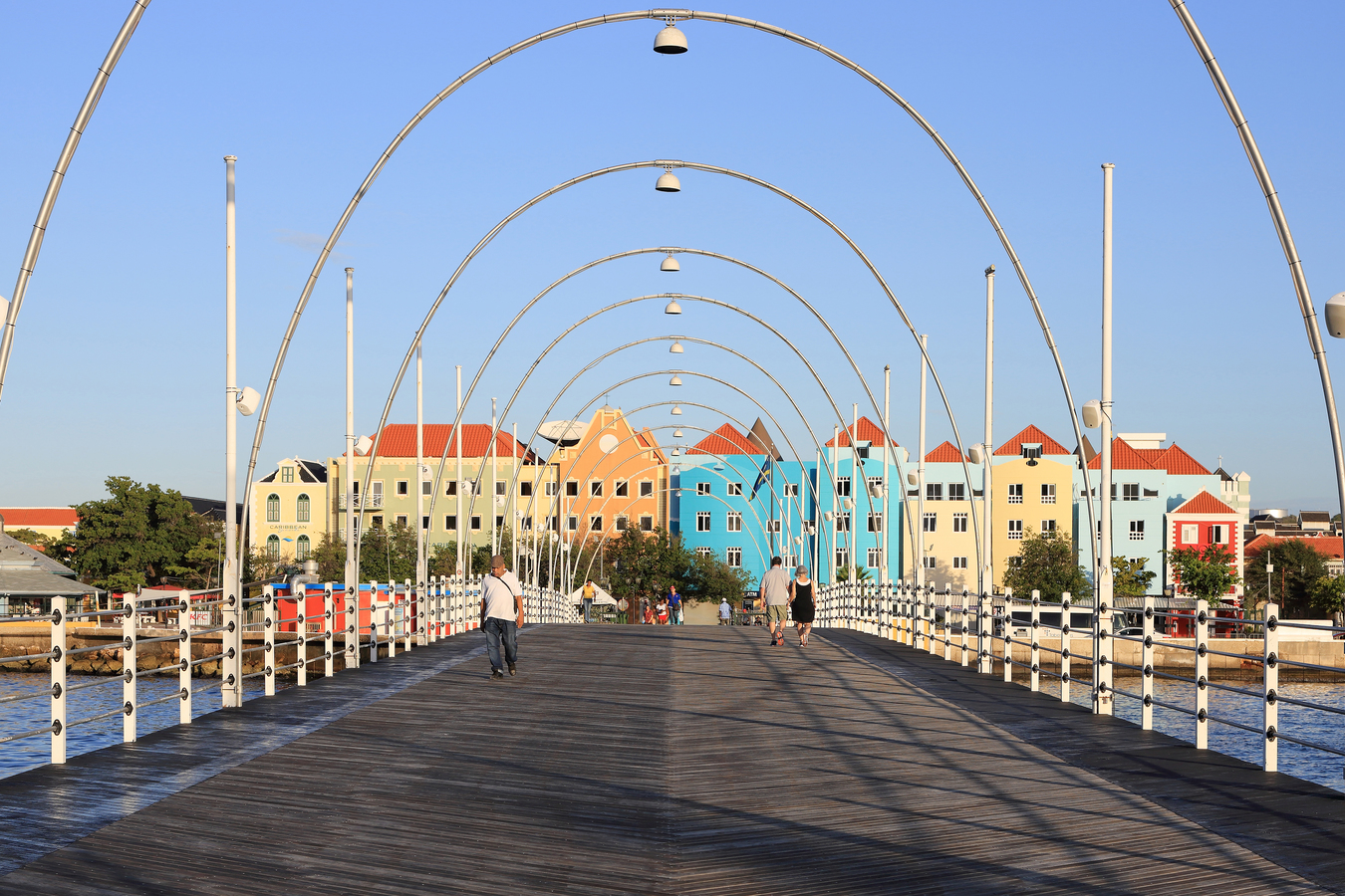 Jigsaw puzzle of a long bridge over some water with Willemstad in the background