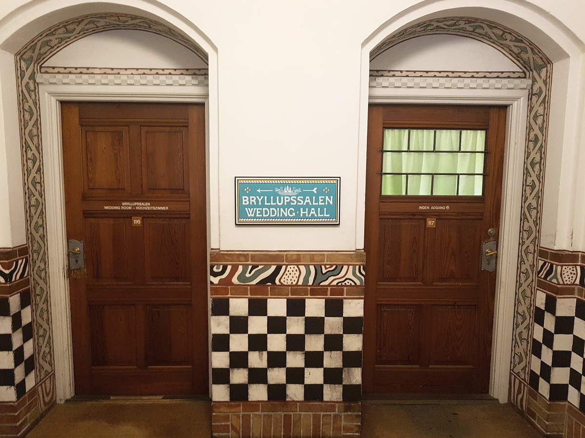 Jigsaw puzzle of a view of a two wooden doors with a wedding sign